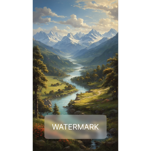 A serene valley unfolds beneath majestic snow-capped peaks, with a meandering river reflecting the azure sky.