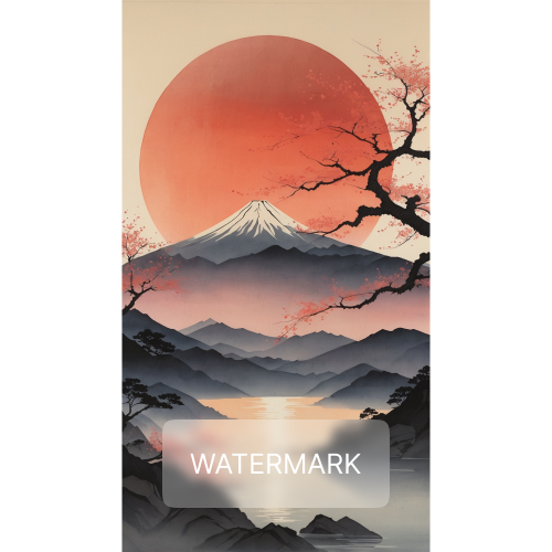 A serene panorama of Mount Fuji, enveloped in the warm glow of a large red sun.
